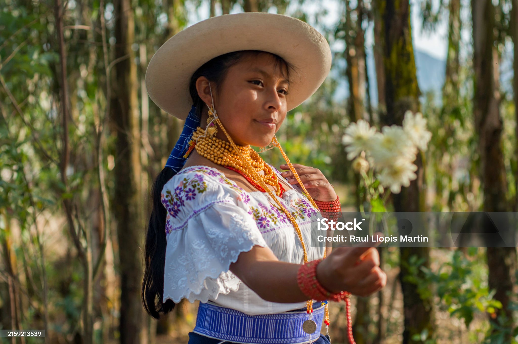 Niña nativa jugando con flor